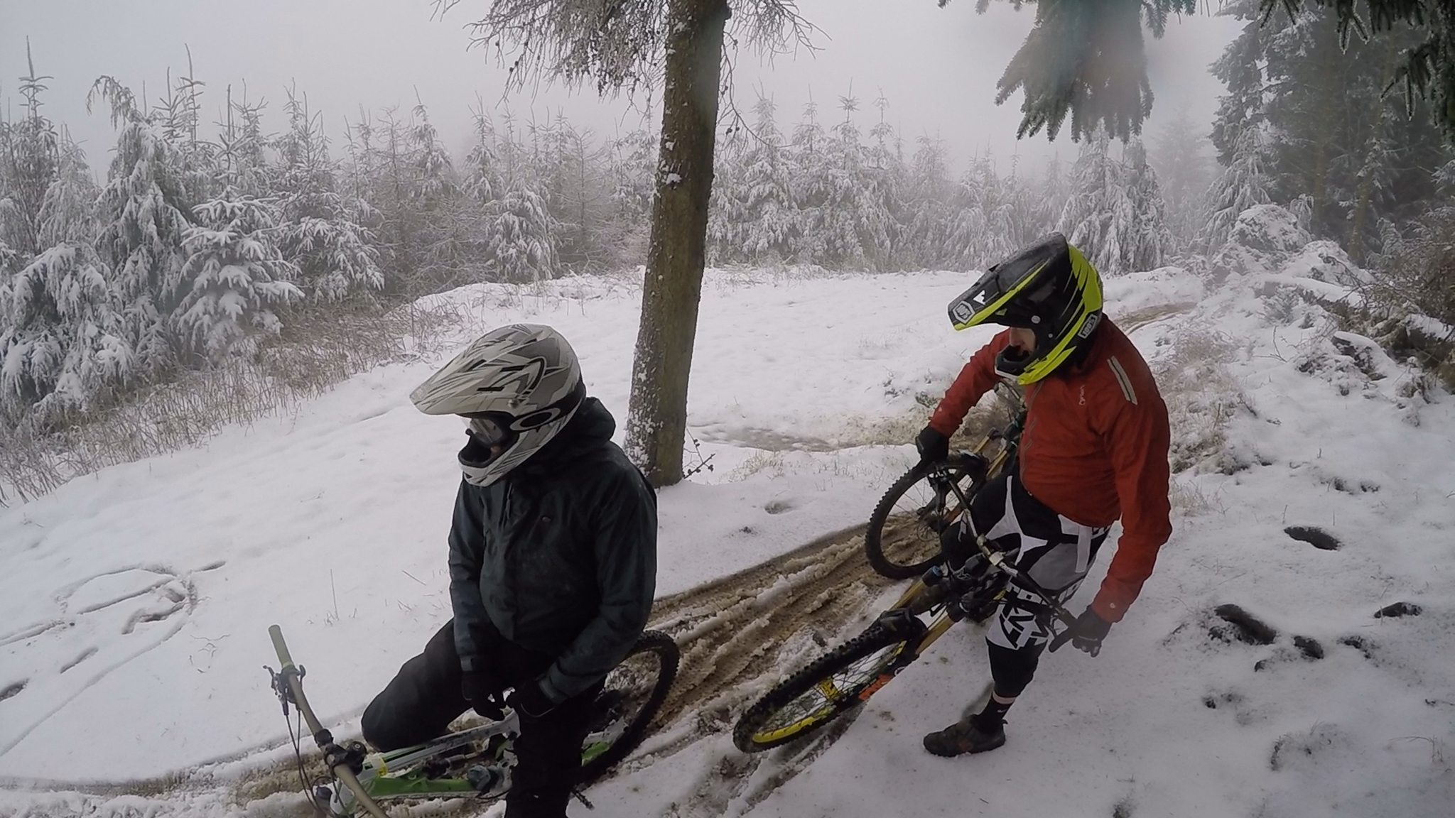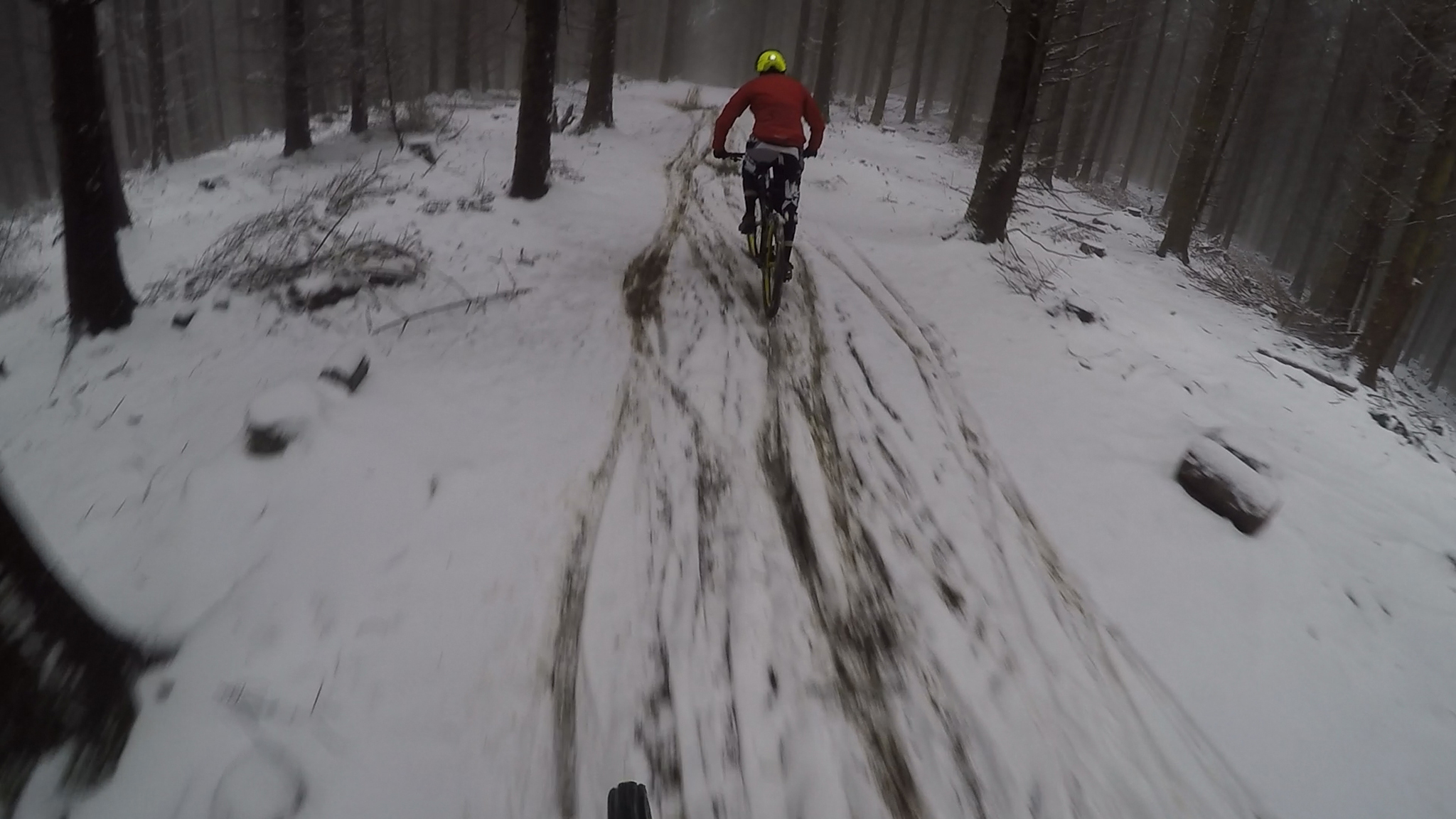 Freezing, snowy conditions at Hopton for the Pearce Cycles uplift on 21st January 2018. It still rode remakably well and we had a laugh.