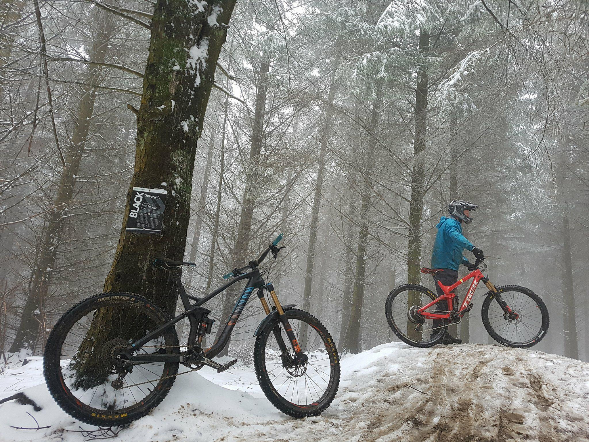 Freezing, snowy conditions at Hopton for the Pearce Cycles uplift on 21st January 2018. It still rode remakably well and we had a laugh.